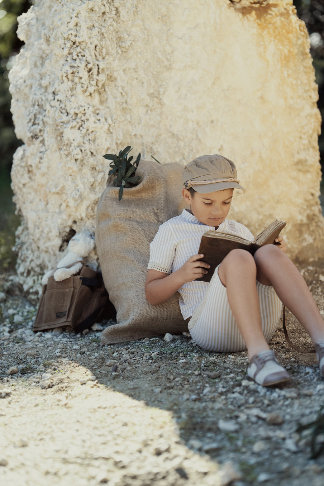 CLAN CROCHET DETAIL PINSTRIPE SET-DESERT